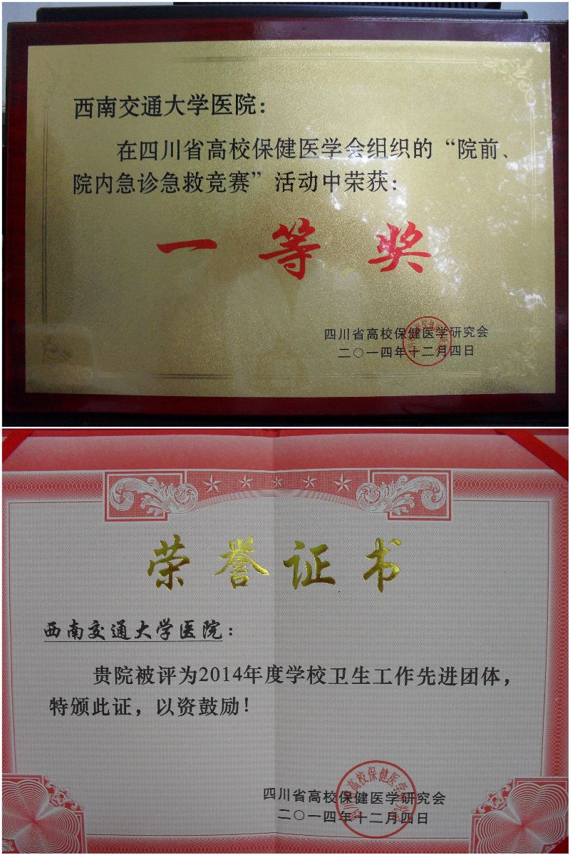 最后,大会对2014年度学校卫生工作先进单位、先进个人及省高校保健医学会院前院内急诊急救竞赛优胜者进行了表彰。我校校医院荣获2014年度学校卫生工作先进单位、省高校保健医学会院前院内急诊急救竞赛一等奖,并有罗碧均等8人被评为2014年度学校卫生工作先进个人。