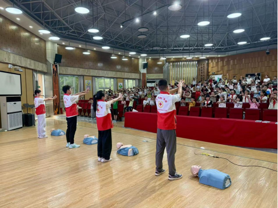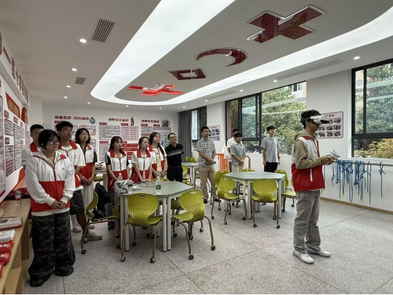 9月1日,实践活动正式拉开帷幕。实践团队首先走进东坡小学,参观了生命健康安全培训教室,通过沉浸式观摩与互动,深入了解眉山市在校园应急安全教育方面的实践与成效。随后,实践团队前往眉山市红十字应急救护培训基地,在东坡区红十字会的指导下,系统学习应急救护理论知识,为下一步实际操作和技能传授奠定了基础。
