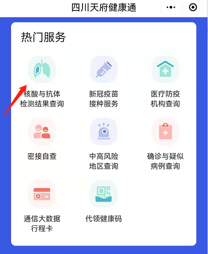 四川天府健康通→热门服务→核酸与抗体检测结果查询