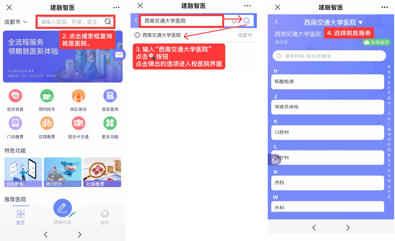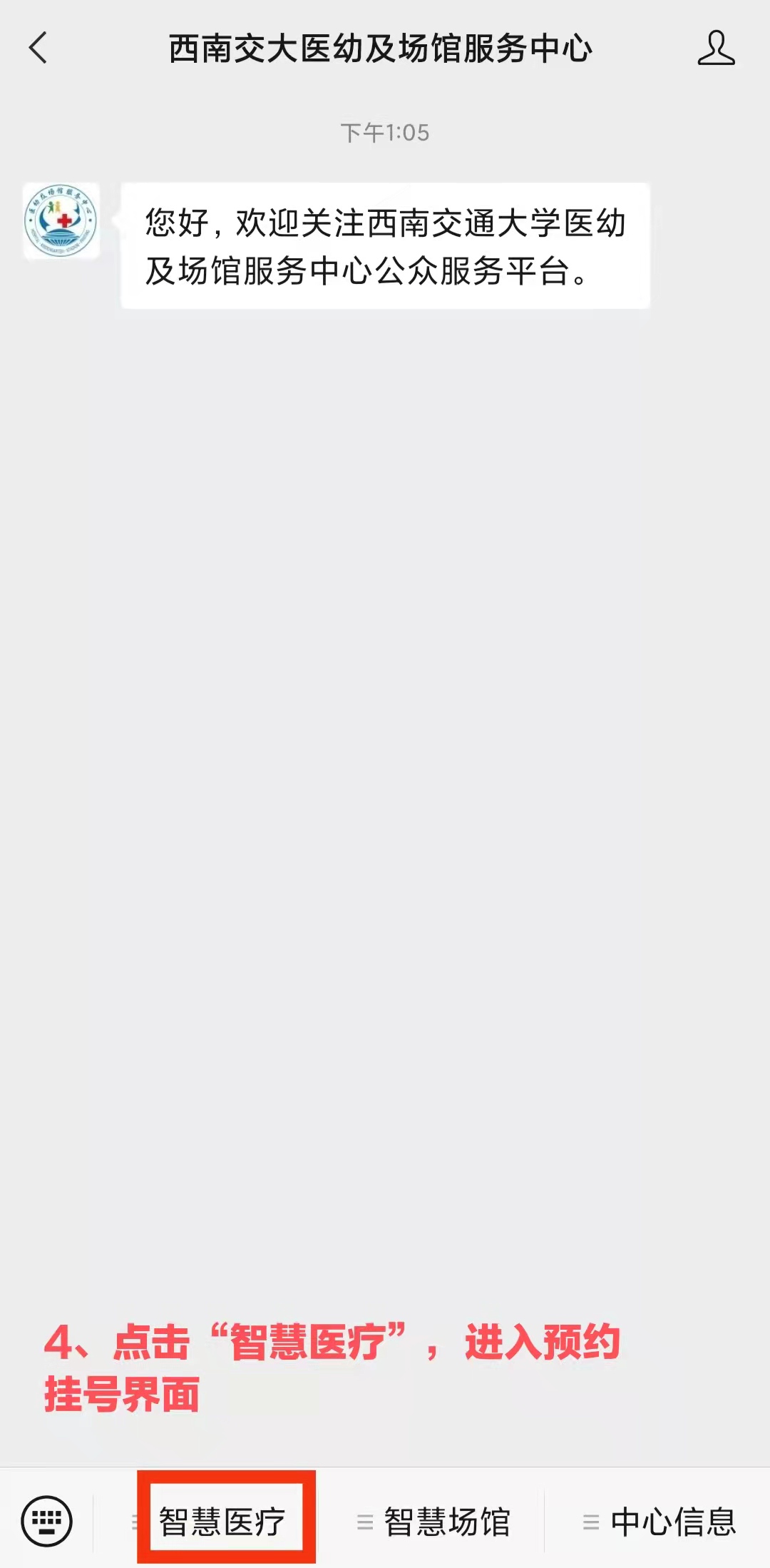 为扎实推进“我为师生办实事”,方便患者就医,校医院借助互联网手段优化就医流程、改善患者体验,打造了“智慧医疗”管理平台。为提高该平台的使用效率,请广大师生注册并登录该平台。医幼及场馆服务中心将对注册前2000位的用户进行抽奖活动,中奖者将获得精美小礼品一份,中奖名单在“西南交大医幼及场馆服务中心”微信公众号另行公布。“智慧医疗”管理平台注册登录流程如下: